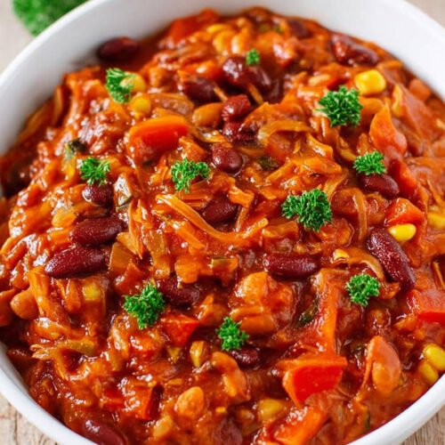Vegetarische Rezepte Einfach zeigt hier ein warmes Gericht mit Erdnuss und Tomate. Afrikanischer Erdnusseintopf duftet nach Kreuzkuemmel und Paprika. Die Sauce bindet cremig. Reis nimmt die Sauce gut auf. Eintopf Rezepte Vegetarisch geben Kraft an einem kuehlen Abend. Vegetarischer Eintopf steht schnell auf dem Tisch. Einfache Gerichte Vegetarisch sparen Zeit und schonen das Budget. Einfache Vegetarische Gerichte brauchen klare Schritte. Paprika und Kohl kochen weich. Bohnen und Mais liefern Biss. Afrikanische Gerichte bringen sanfte Schaerfe. Erdnussmus rundet alles ab. Die Zubereitung gelingt auch Anfaengern. Die Zutaten liegen in jedem Supermarkt. Der Topf kocht leise. Der Duft fuehrt an den Tisch.