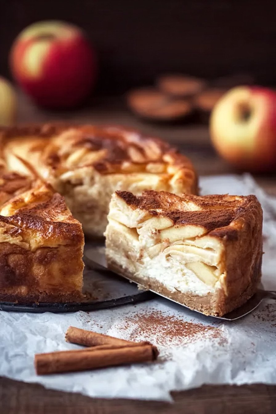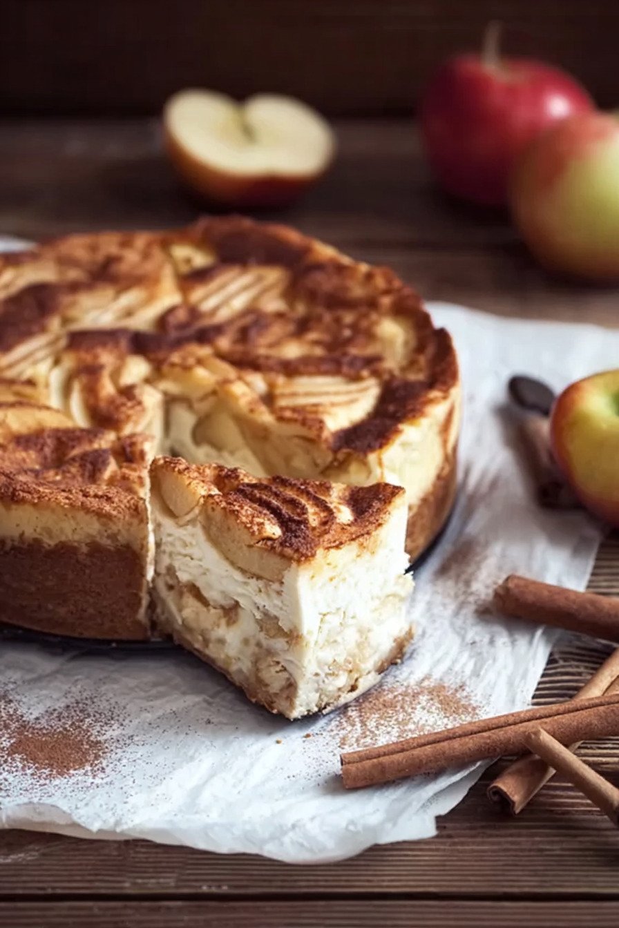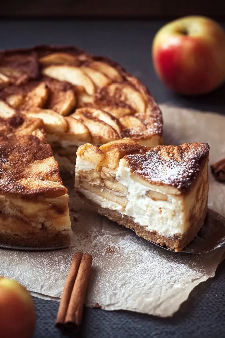 Dieser Kuchen eignet sich hervorragend zum Vorbereiten, weil er nach dem Durchkühlen sogar noch besser schmeckt. Du kannst ihn problemlos am Vortag backen und über Nacht im Kühlschrank ruhen lassen. Dadurch verbinden sich die Aromen von Apfel, Zimt und Käsekuchenmasse besonders intensiv.