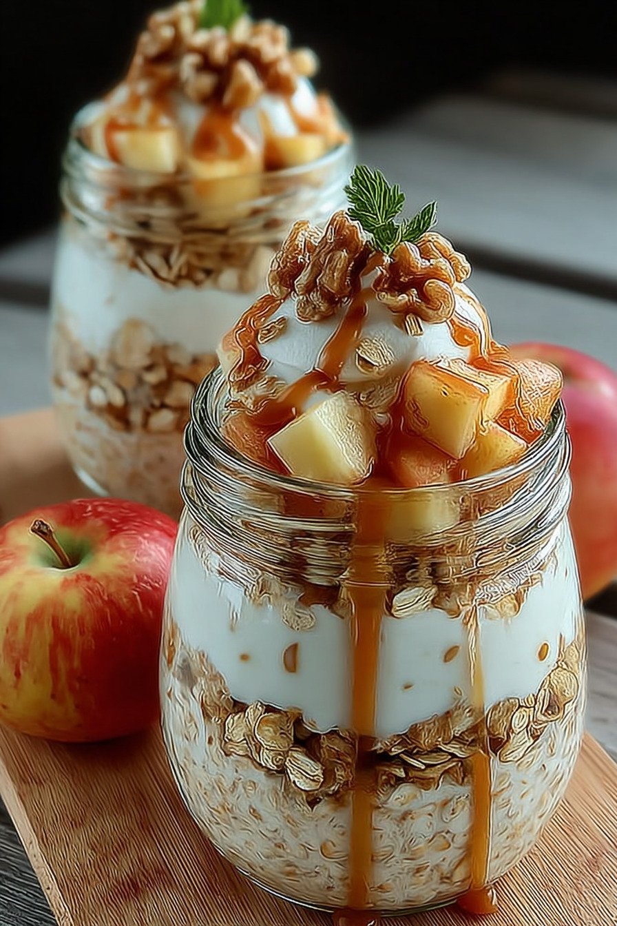 Diese Oats greifen den vertrauten Duft von Apfel und Zimt auf. Die Basis liegt in Haferflocken, Milch und Joghurt. Die Zubereitung gelingt ohne Kochen und passt in jeden Morgen.