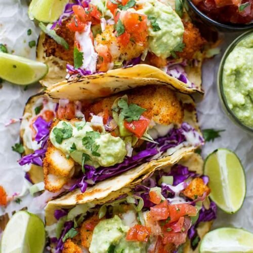 9) Baja Fisch Tacos mit Avocado-Crema