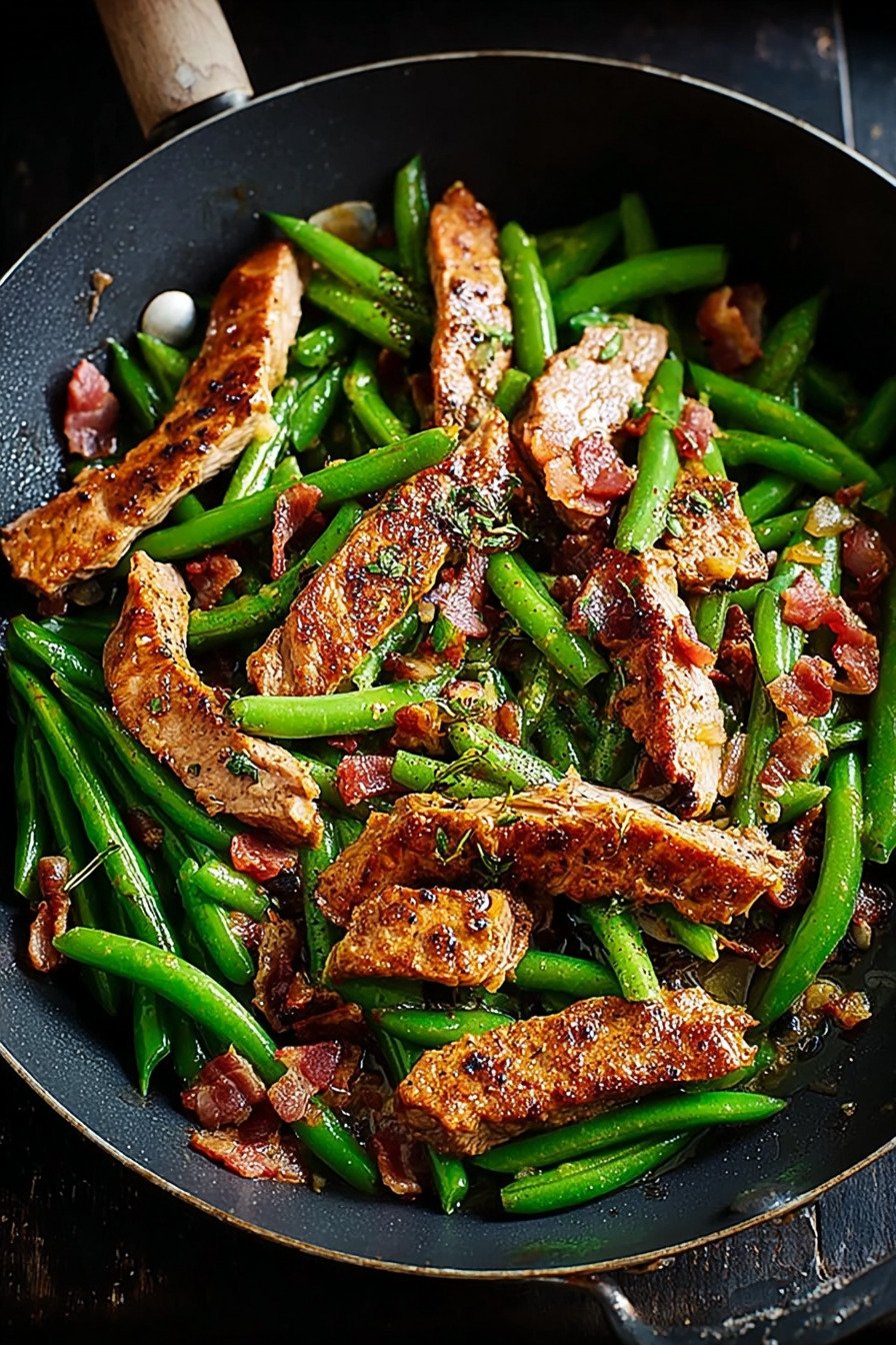 Diese Pfanne bringt grüne Bohnen, zartes Fleisch und würzigen Speck in eine klare Reihenfolge. Bohnen Rezepte stehen hier im Mittelpunkt und erhalten mit Senf und Sojasauce eine runde Würze. Die Hitze bleibt moderat, die Schritte bleiben kurz, das Ergebnis schmeckt kräftig und frisch. Bohnen Mit Speck liefert Tiefe. Rote Bohnen Rezepte inspirieren zu Variationen. Schwarze Bohnen Rezepte zeigen neue Farben auf dem Teller. Ein Grüne Bohnen Rezept bleibt dabei schlicht. Ein Saure Bohnen Rezept sorgt für prickelnde Säure. Ein Breite Bohnen Rezept bringt mehr Biss. Alles passt in eine einzige Pfanne und lässt sich gut steuern. Anna von Anna Rezepte führt durch die Zubereitung. Zuerst mariniert das Fleisch. Dann garen die Bohnen. Zum Schluss verbinden Speck, Zwiebel und Fleisch die Sauce mit dem Gemüse. So entsteht eine Mahlzeit für jeden Tag mit wenig Aufwand und klarer Struktur.