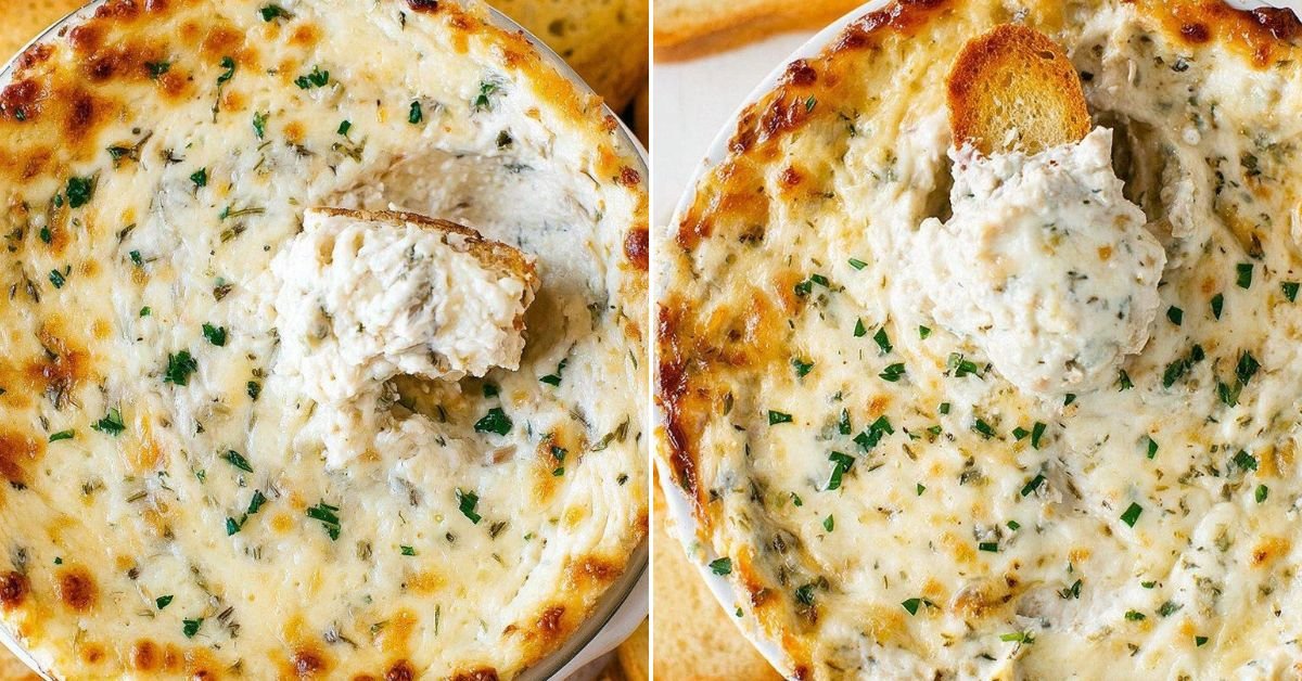Schritt 6: Backe den Dip für 20 Minuten, bis der Käse geschmolzen und leicht goldbraun ist.