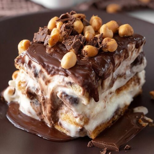 Wenn es ein Dessert gibt, das Kindheitserinnerungen weckt und gleichzeitig der Star jeder Sommerparty sein kann, dann ist es dieser Buster Bar Eiscreme-Kuchen. Er kombiniert eine knusprige Schokoladen-Erdnussbodenbasis mit einer cremigen Vanilleeisfüllung und einer dekadenten hausgemachten Schokoladensauce, die alles überzieht. Ein perfektes Zusammenspiel von Texturen und Aromen – süß, nussig, cremig und schokoladig. Dieses Rezept ist ein wahrer Hit bei Jung und Alt. Es lässt sich wunderbar vorbereiten und ist ideal, wenn Gäste kommen. Dank seiner einfachen Zubereitung und dem beeindruckenden Ergebnis gehört es definitiv in die Sammlung für kuchen rezepte einfach, besonders wenn man schnell etwas Besonderes zaubern will. Ob Geburtstag, Familienfeier oder Grillabend – dieser Eiscreme-Kuchen ist die perfekte Abkühlung und wird mit Sicherheit für Begeisterung sorgen.