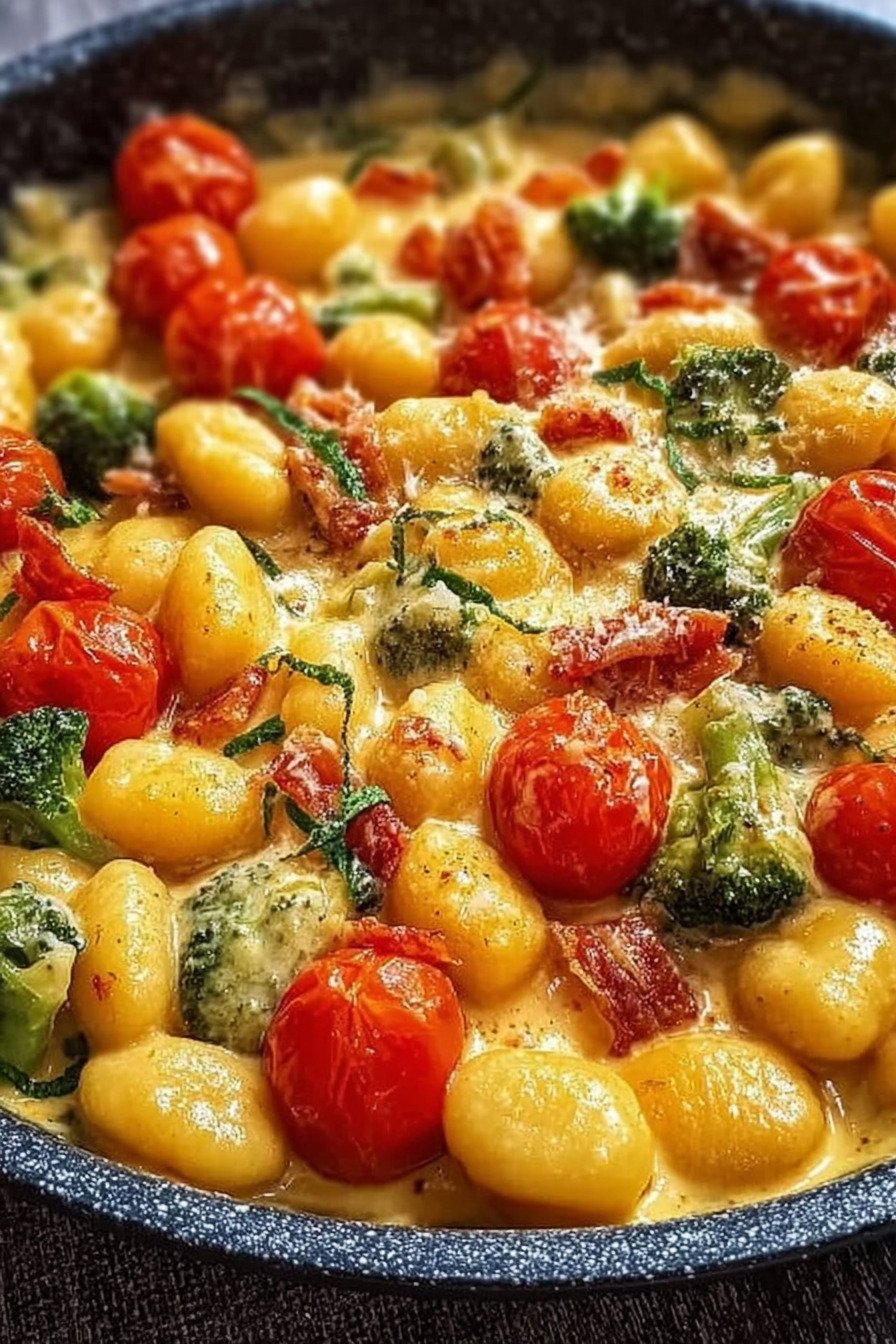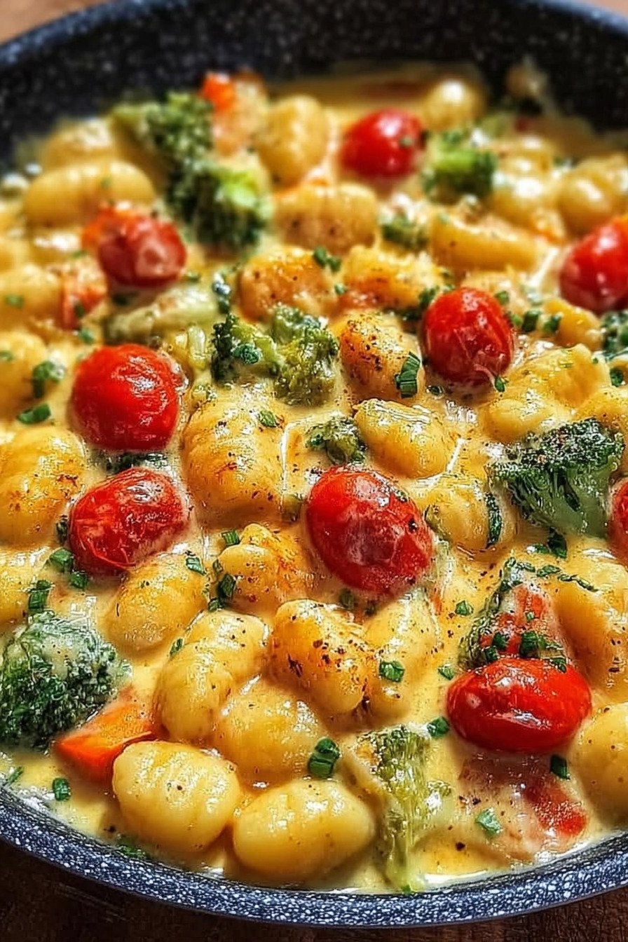Diese cremige Pfanne liefert Gnocchi mit sanfter Sauce und viel Gemuese. Die Methode bleibt klar und kurz. Die Schritte fuehren sicher zum Ziel.