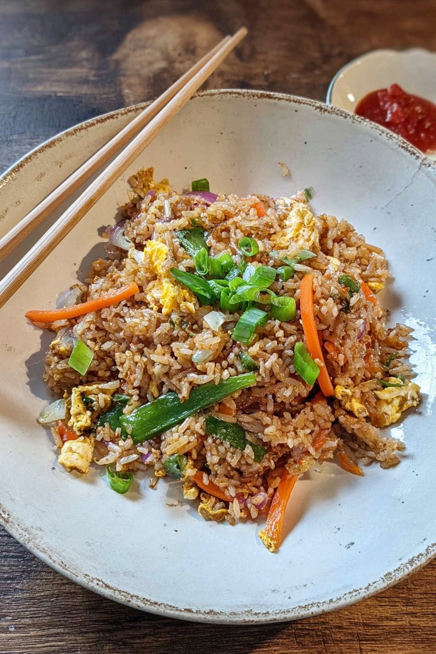 Reis Rezepte Vegetarisch zeigt, wie einfach gutes Essen gelingt. Dieser gebratene Reis bringt warmen Duft in die Küche. Frisches Gemüse sorgt für Biss und Farbe. Das Ei bindet den Reis. Die Sojasoße rundet ab. Alles passt in den Alltag. Gebratener Reis steht schnell auf dem Tisch. So passen auch Rezepte mit Reis in einen vollen Tag. Reis Gerichte Vegetarisch sättigen gut und bleiben leicht. Leckere Vegetarische Rezepte brauchen keine lange Liste. Wenige Sachen reichen. Du rührst, du würzt, du servierst. Reis Rezepte Einfach helfen beim Start. Vegetarische Rezepte Einfach geben Sicherheit. Du nutzt Reis vom Vortag. Das klappt in der Pfanne am besten. Das Gemüse bleibt knackig. So entsteht ein Gericht mit klaren Schritten und wenig Aufwand. Gebratener Reis liefert Wärme und Geschmack. Die Küche bleibt sauber. Du kochst entspannt und teilst den Teller mit Freude.