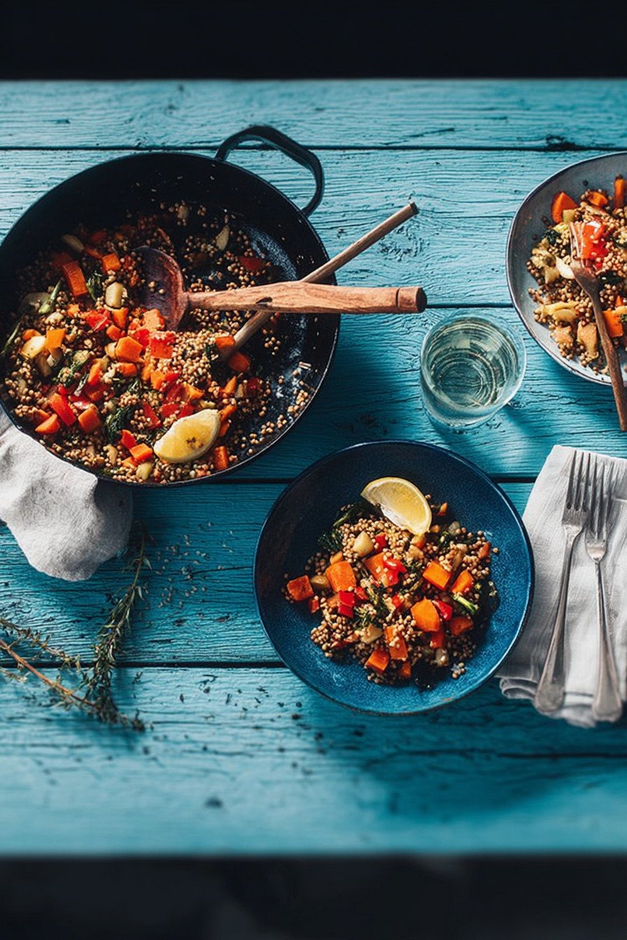 Diese Gemüse-Buchweizen-Pfanne ist eines der besten buchweizen rezepte für alle, die gesunde und unkomplizierte Gerichte lieben. Inspiriert von der Vielfalt moderner Salat Rezepte, vereint dieses Gericht frisches Gemüse mit nahrhaftem Buchweizen zu einer ausgewogenen Mahlzeit. Es ist leicht, aromatisch und perfekt für stressige Tage geeignet.
