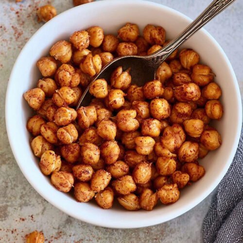 Dieses Rezept lässt sich wunderbar im Voraus zubereiten. Du kannst die Kichererbsen morgens rösten und abends genießen oder sie gleich für die ganze Woche vorbereiten. Sie eignen sich hervorragend für Meal-Prep-Pläne oder als gesunder Büro-Snack.
