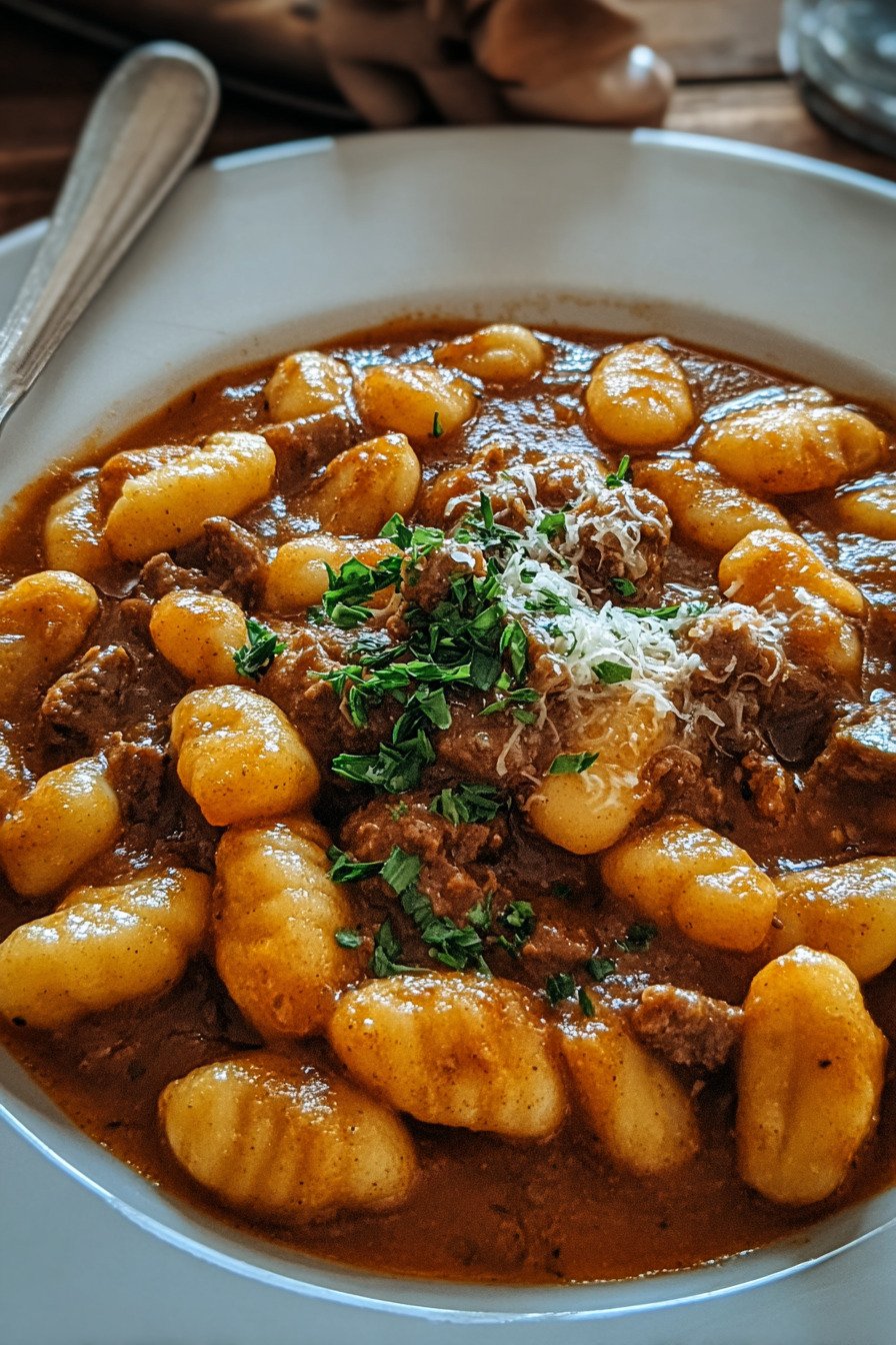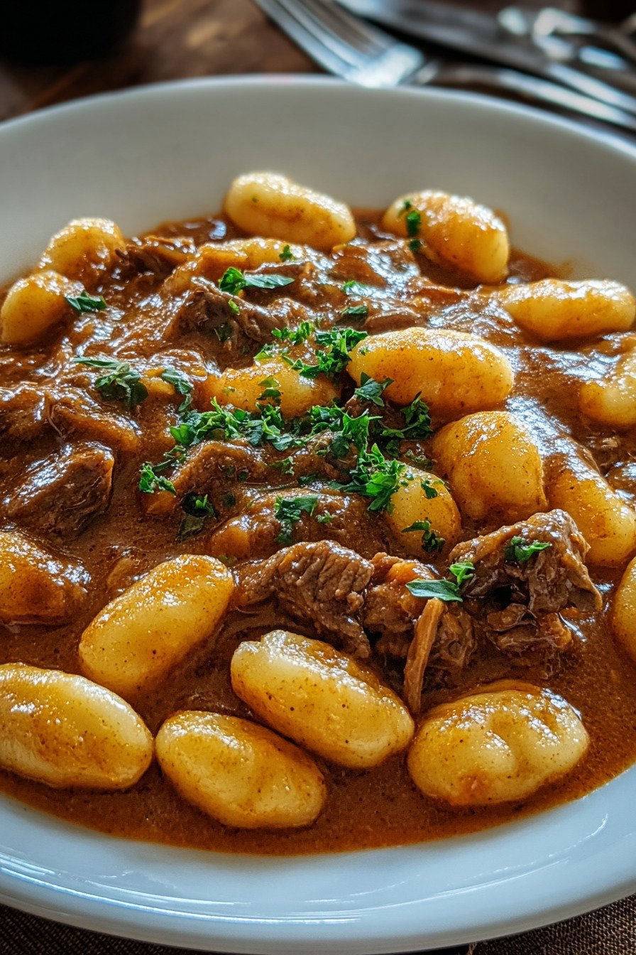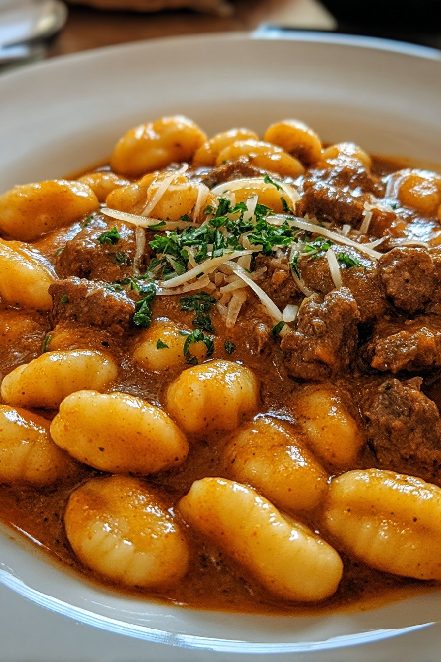 Dieses gnocchi rezept bringt sanfte Gnocchi in eine tiefe Paprika Tomaten Sauce. Zartes Fleisch schmort langsam und gibt Würze ab. Brokkoli kommt am Ende dazu und bleibt bissfest. Die Sauce bindet Tomatenmark und Brühe. Paprika Zwiebeln und Knoblauch bilden das Fundament. Rauchiges Paprikapulver rundet ab. So entsteht ein runder Geschmack ohne viel Aufwand. Das Gericht passt für Alltag und Gäste. Gnocchi Soße umhüllt jede Nocke. Gnocchi Brokkoli bringt Frische. Auch als Veganer Gulasch oder Veganes Gulasch möglich. Für ein Vegetarisches Gulasch ersetzt man das Fleisch durch Pilze.