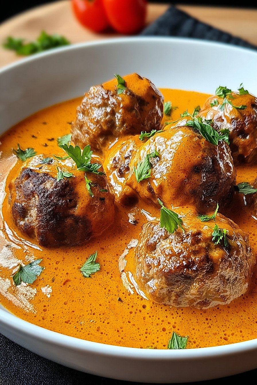 Hackbällchen in cremiger Paprikasoße Abendessen Rezepte Einfach
