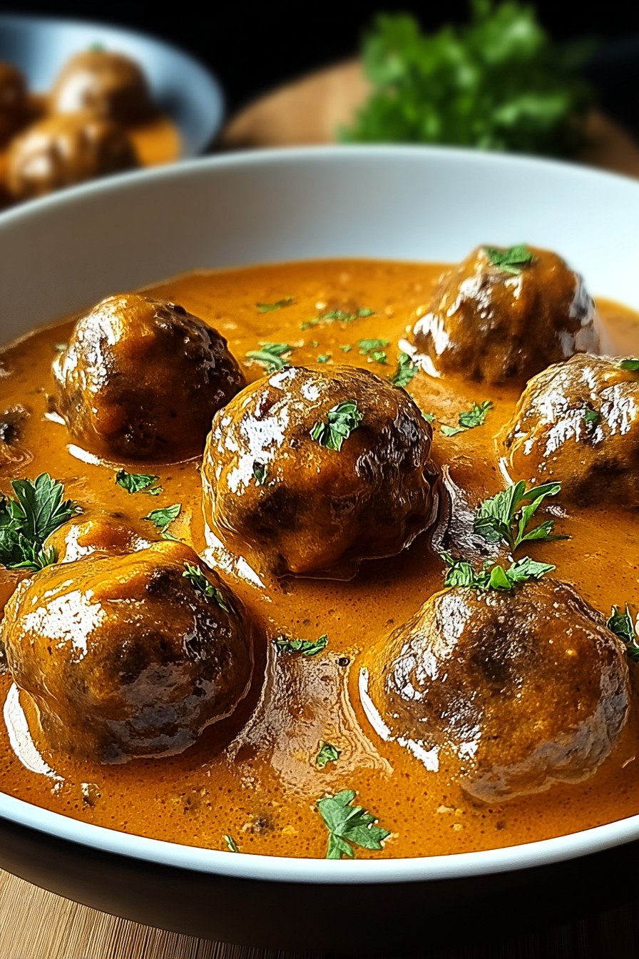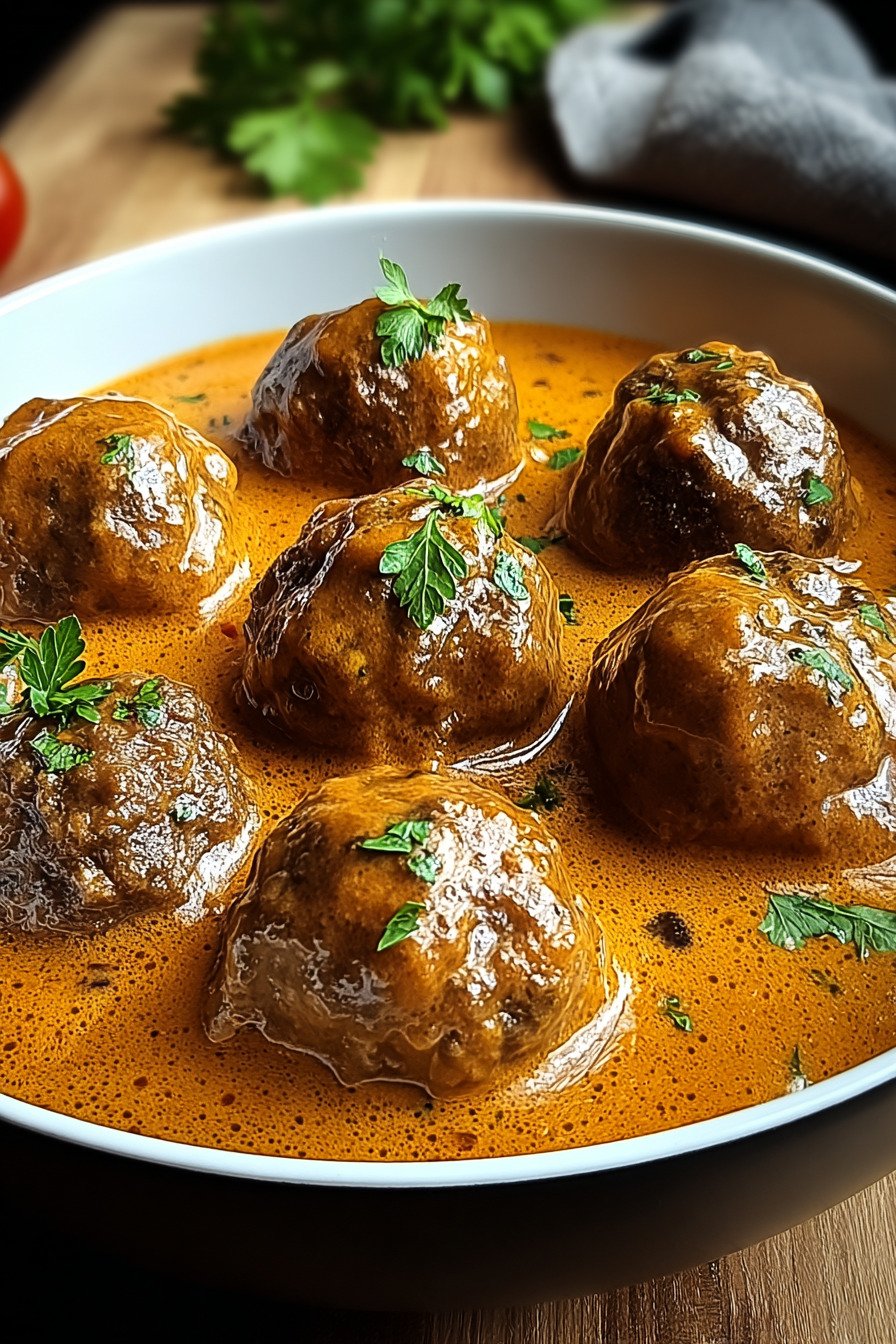 Hackbällchen in cremiger Paprikasoße aus dem Ofen – Einfach & Schnell