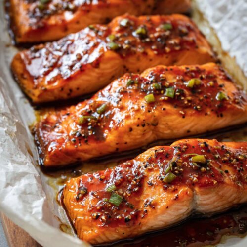Honigglasierter Lachs ist ein schnelles, gesundes und köstliches Gericht für jeden Tag. Die einfache Kombination aus Honig, Sojasauce und Knoblauch ergibt eine aromatische Glasur. Ideal für ein ausgewogenes Abendessen mit Gemüse oder Reis. Durch die kurze Zubereitungszeit eignet sich das Rezept perfekt für stressige Wochentage und ist auch für Kochanfänger bestens geeignet.