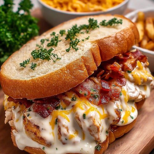 Dieses käsige Chicken-Bacon-Sandwich ist ein echter Genuss für alle, die schnelle, einfache und herzhafte Rezepte lieben. Mit saftigem Hähnchenbrustfilet, knusprigem Bacon, geschmolzenem Käse und fluffigem Brot ist es perfekt für ein gemütliches Abendessen oder als Highlight beim Wochenend-Brunch. Du brauchst dafür keine komplizierten Zutaten oder stundenlange Vorbereitung – einfach zubereiten und genießen! Wenn du wraps rezepte hähnchen magst, wirst du dieses Sandwich lieben. Es lässt sich auch wunderbar vorbereiten und ist ideal für ein schnelles Mittagessen, Picknick oder Familienfeier. Ein Must-Try für Fans von wraps rezepte füllung hähnchen, schnelle wraps rezepte, protein wraps rezept, gesunde wraps rezepte, wraps rezepte schnell einfach und wraps rezepte gesund.