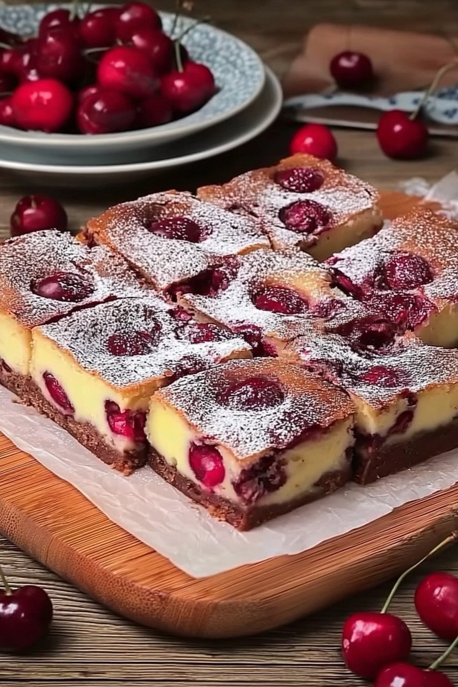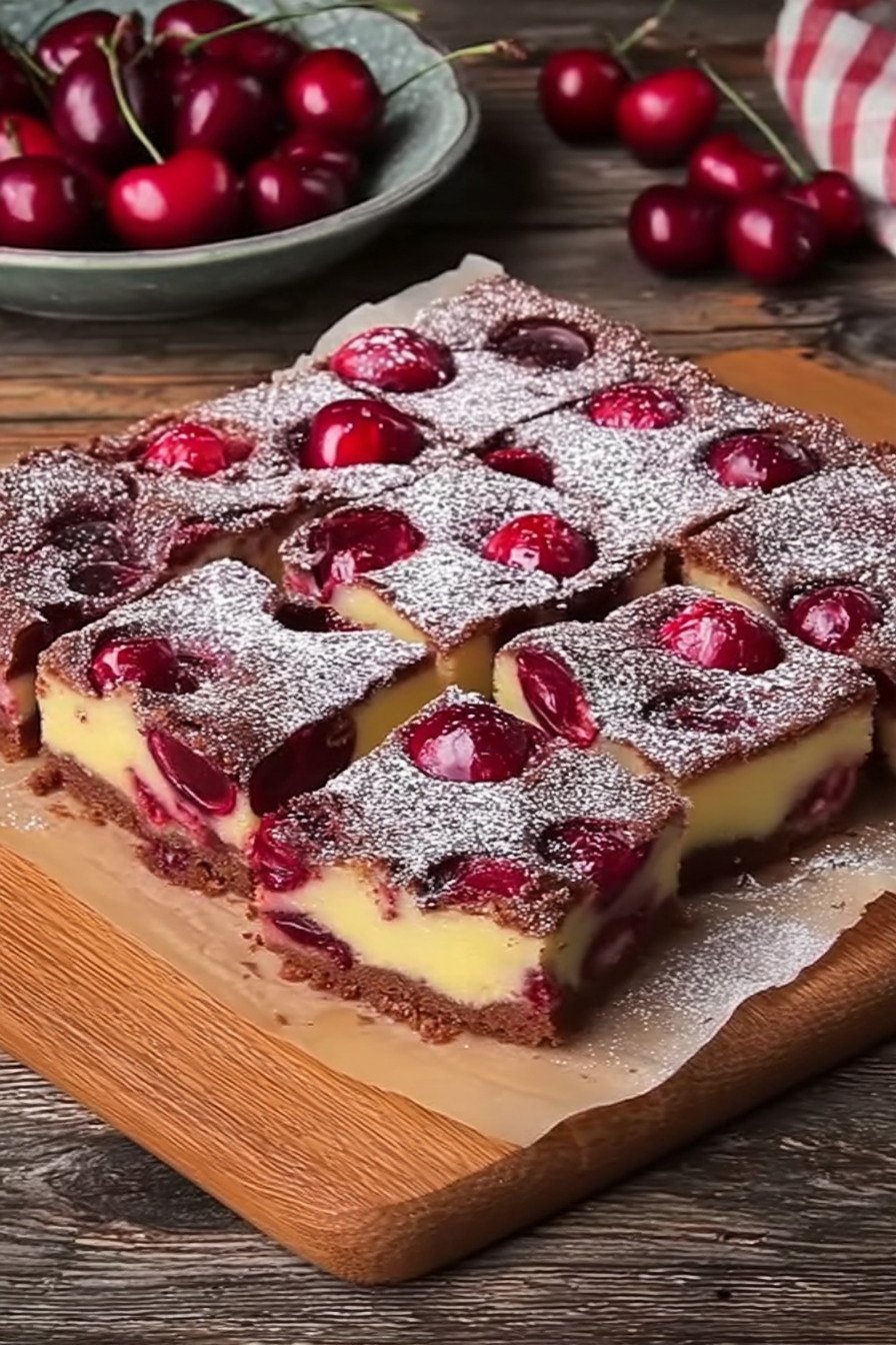 Zum Servieren kurz bei Raumtemperatur ruhen lassen. Der Duft öffnet sich wieder. Wer zarten Rand mag erwärmt die Stücke kurz im milden Ofen. So bleibt der Biss weich und die Kirsche saftig.