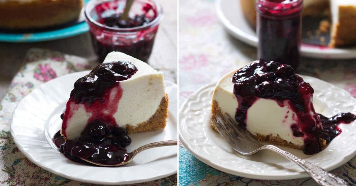 2) Einfaches Kühlschrank-Käsekuchen mit Blaubeersauce-Rezept