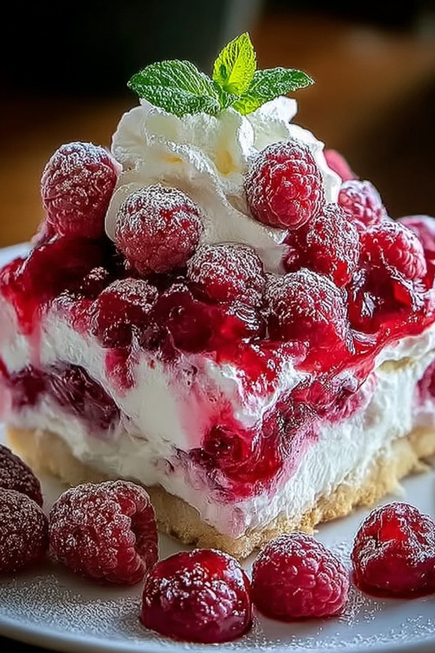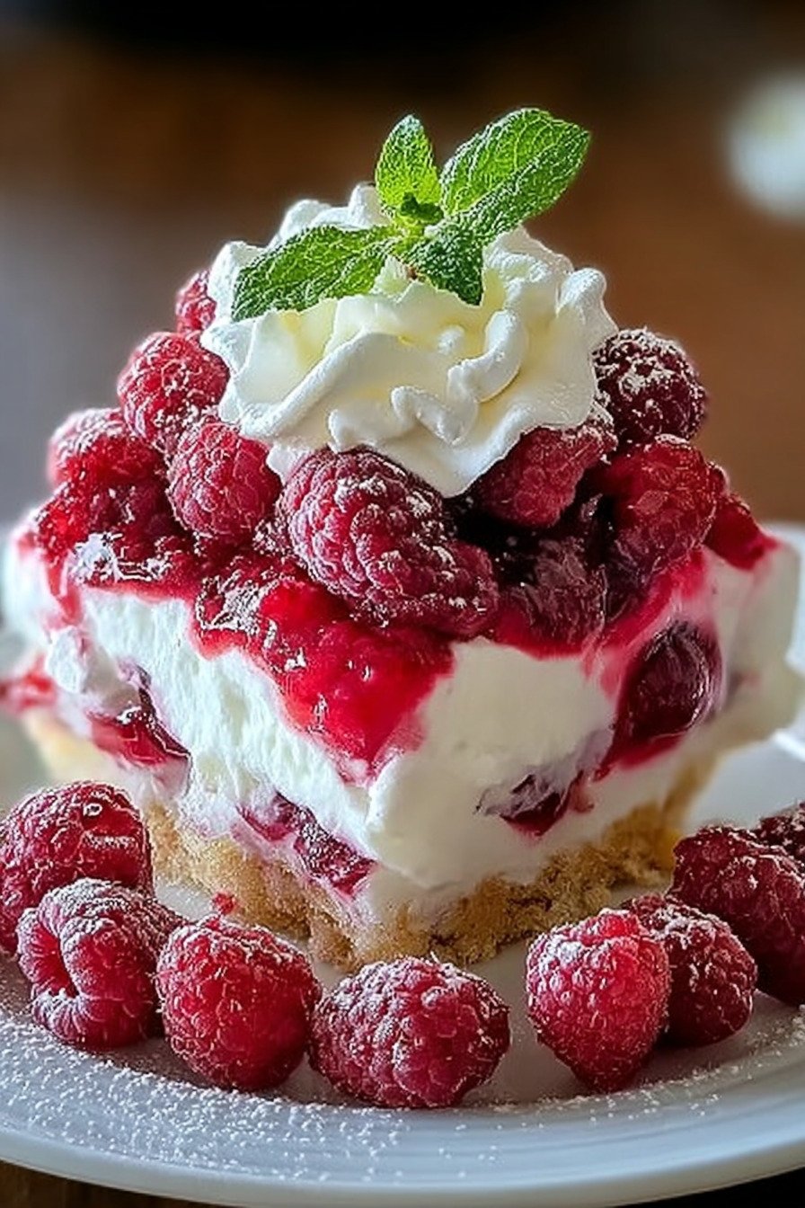 8. Vor dem Servieren mit frischen Himbeeren garnieren.