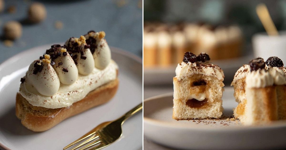 Die Basis bilden zwei Loeffelbiskuits pro Stueck. Dazwischen sitzt eine weiche Fuellung. Aussen folgt eine stabile Mascarponecreme. Die Milch duftet nach Vanille und Zimt. Ein kurzer Tauchgang macht die Happen zart, doch sie bleiben formstabil.