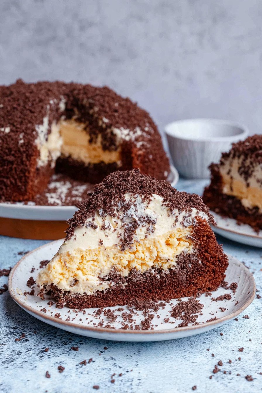 Der Teig trägt Kakao und bleibt dennoch weich. Die Creme liegt leicht. Bananen bringen milde Süße. Die Krümel bilden die typische Kuppel. Das Ergebnis überzeugt auf dem Blech und bei Gästen.