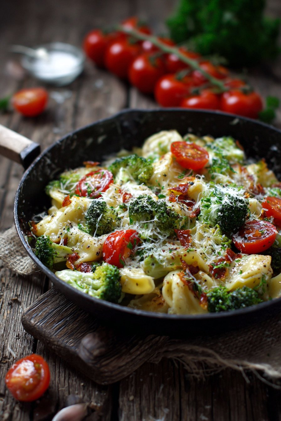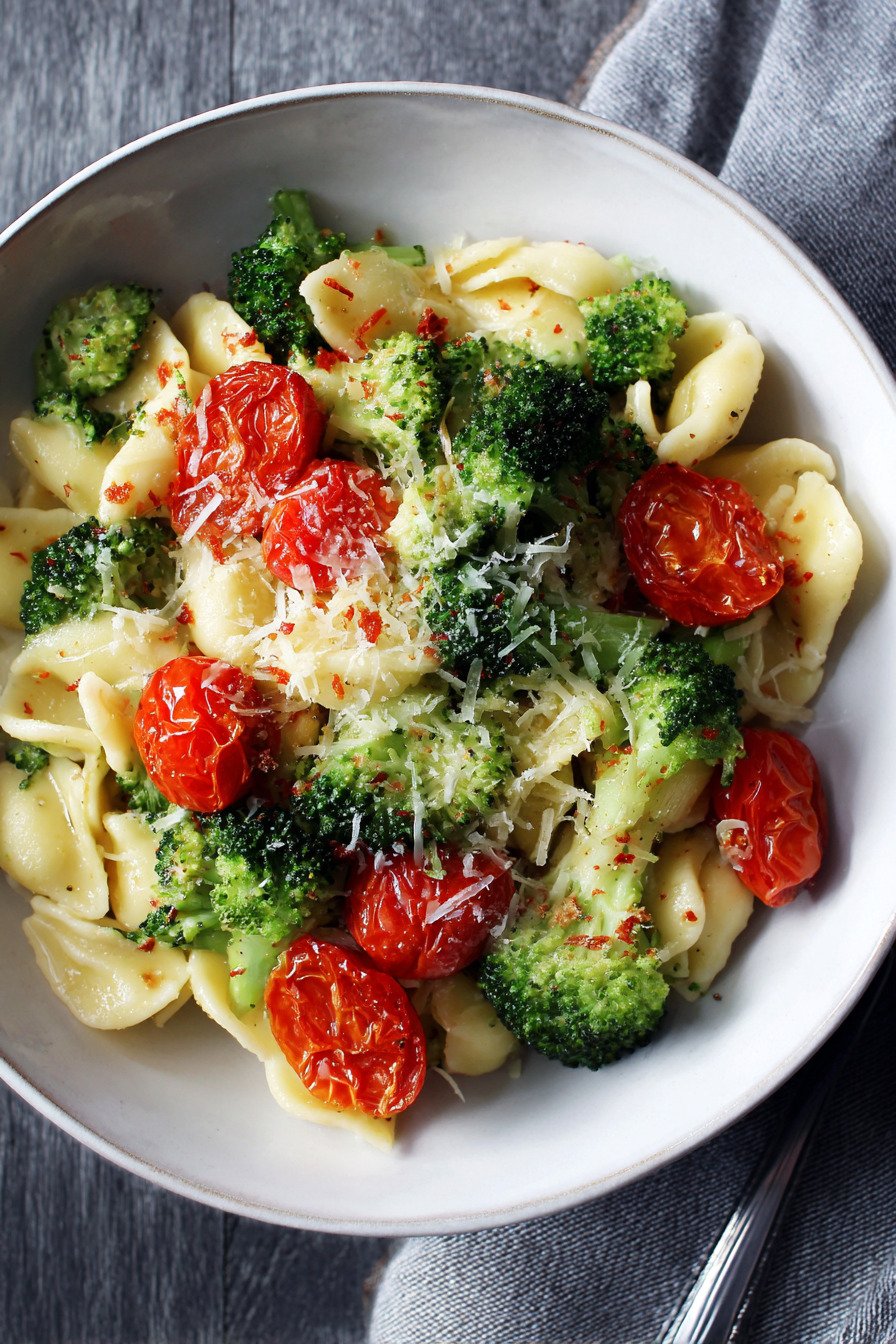 Brokkoli in gleich kleine Röschen teilen. So gart alles im gleichen Tempo. Tomaten erst später zufügen. Der Saft soll kurz köcheln, nicht verkochen. Für tomatenbasierte Rezepte schützt diese Reihenfolge die Frische.