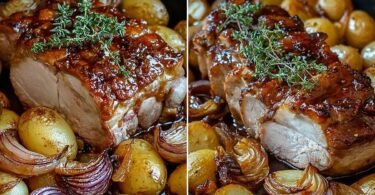Dutch Ofen Rezepte: Schweinenacken mit Äpfeln und Zwiebeln