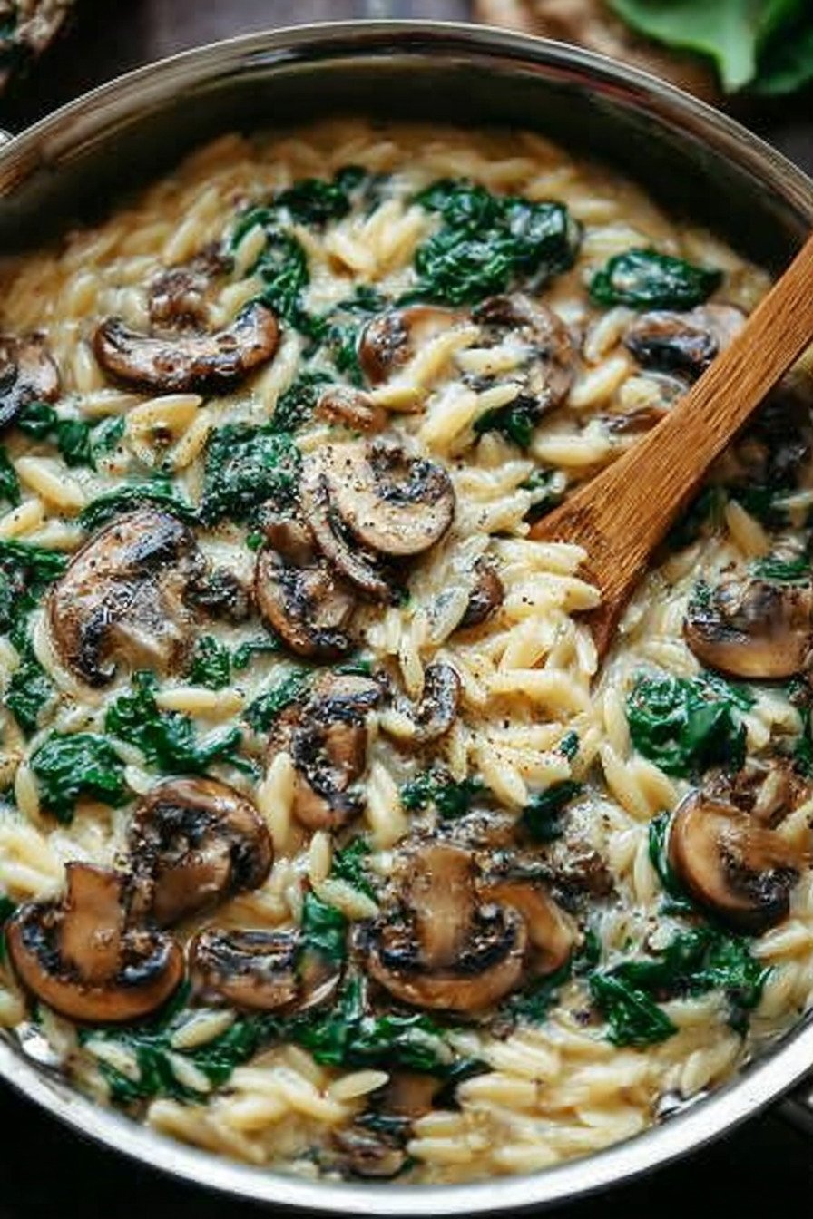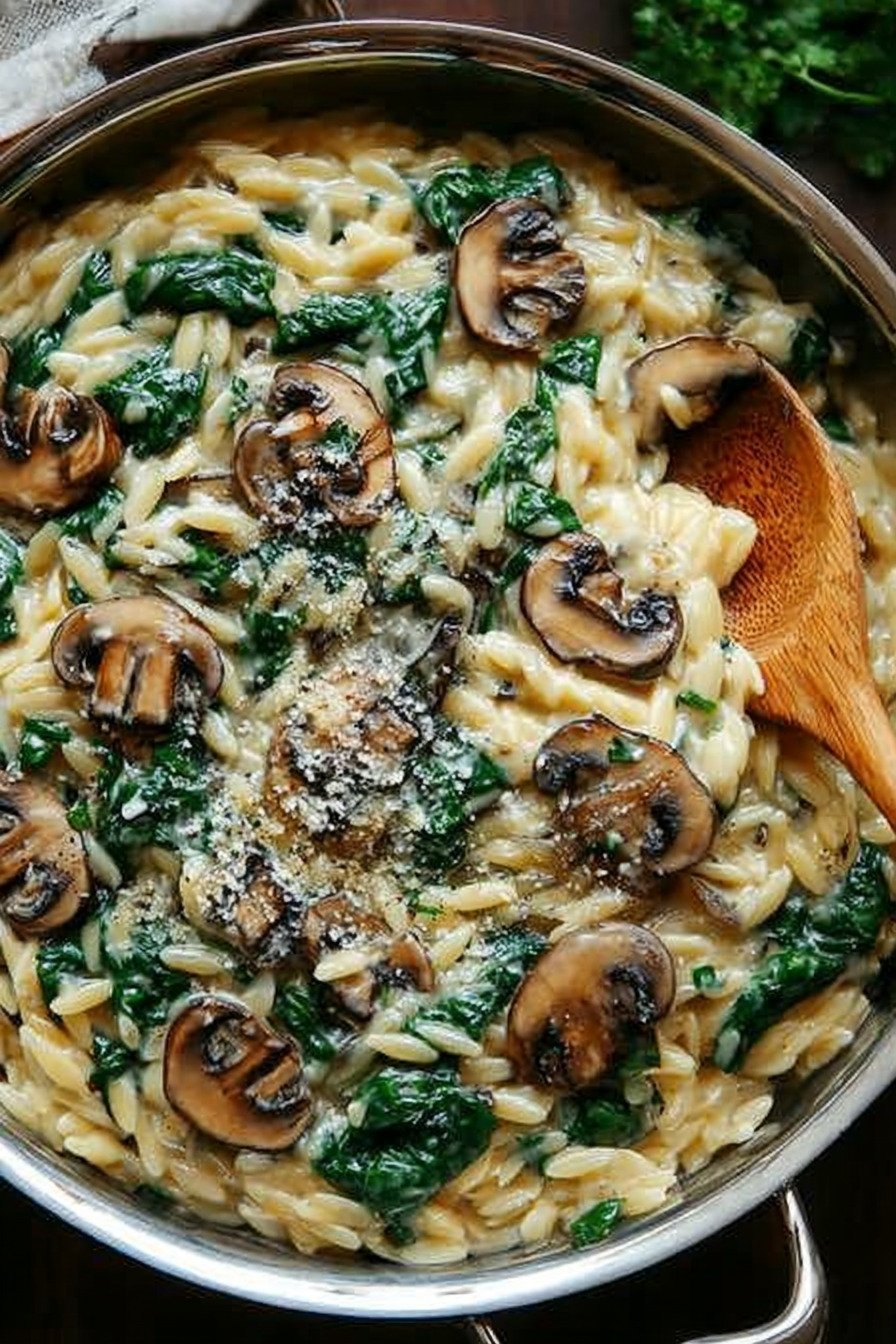 Dieses Rezept bringt cremiges Orzo, saftige Pilze und frischen Spinat in ein ausgewogenes Gericht, das zuverlässig gelingt und gut vorbereitet werden kann. Die Methode hält die Garzeiten kurz und die Struktur zart. Servieren klappt warm oder kalt.