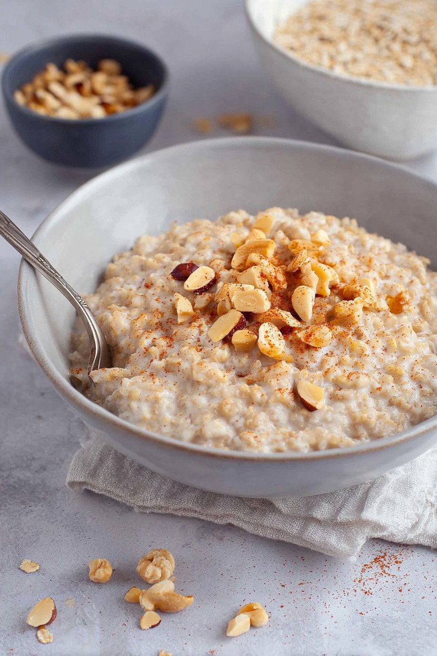 Für Abwechslung wechsle die Flüssigkeit. Mit Milch wird es runder. Mit Wasser wirkt es leichter. Ein Stück Banane zerdrückt bringt zusätzliche Cremigkeit. So bleibt Porridge vielseitig und passt zu vielen Vorlieben.