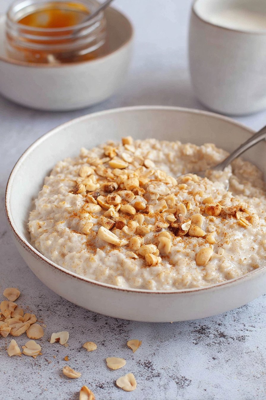 Salz dosiere sparsam. Eine Messerspitze genügt. Sie hebt die Süße und verstärkt die Getreidenote. Für mehr Protein Frühstück rühre Skyr oder Joghurt unter. Geröstete Nüsse geben Textur. Ein kleiner Löffel Nussmus sorgt für extra Fülle.