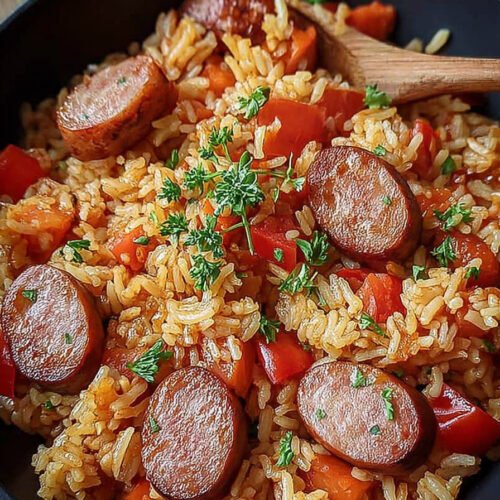 Eine Wurst Reis Pfanne bringt reichlich Geschmack auf den Tisch, ohne dass du viel Zeit investieren musst. Dieses Gericht vereint würzige Wurststücke mit lockerem Reis und frischem Gemüse. Das Ergebnis ist eine Mahlzeit, die bodenständig bleibt und dennoch voller Aroma steckt. Besonders wichtig: Das Gericht passt sich deinem Alltag an.