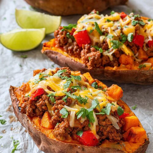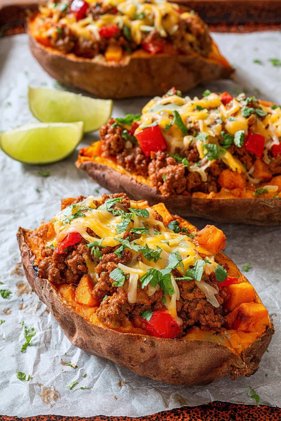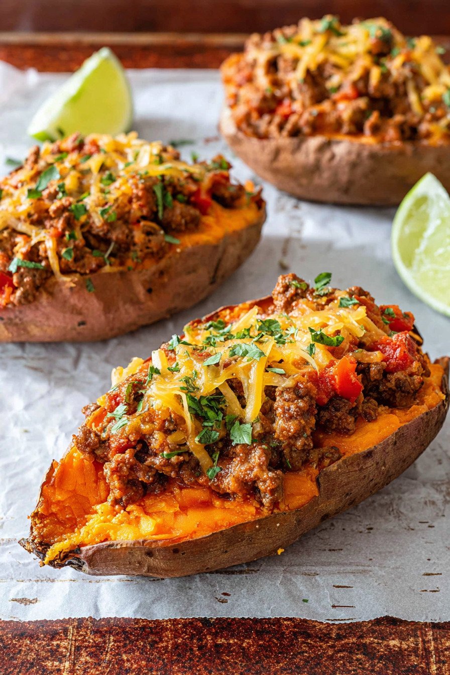 Süßkartoffeln: Sie bilden die Basis dieses Gerichts. Beim Backen entwickelt das Fruchtfleisch eine feine Süße und bleibt dennoch saftig. Diese Eigenschaft macht sie ideal für Süßkartoffel Rezepte Ofen und sorgt für eine stabile Hülle, die die Füllung gut trägt.