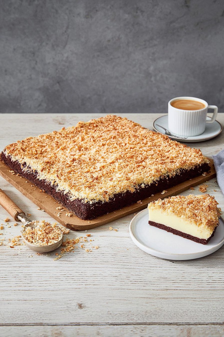 Die Struktur wirkt klar. Teig wird kurz gerührt. Creme wird sanft verbunden. Späne fallen locker. Als Ergebnis steht ein einfacher Blechkuchen vom Blech. Er passt zu Familie und Gästen.