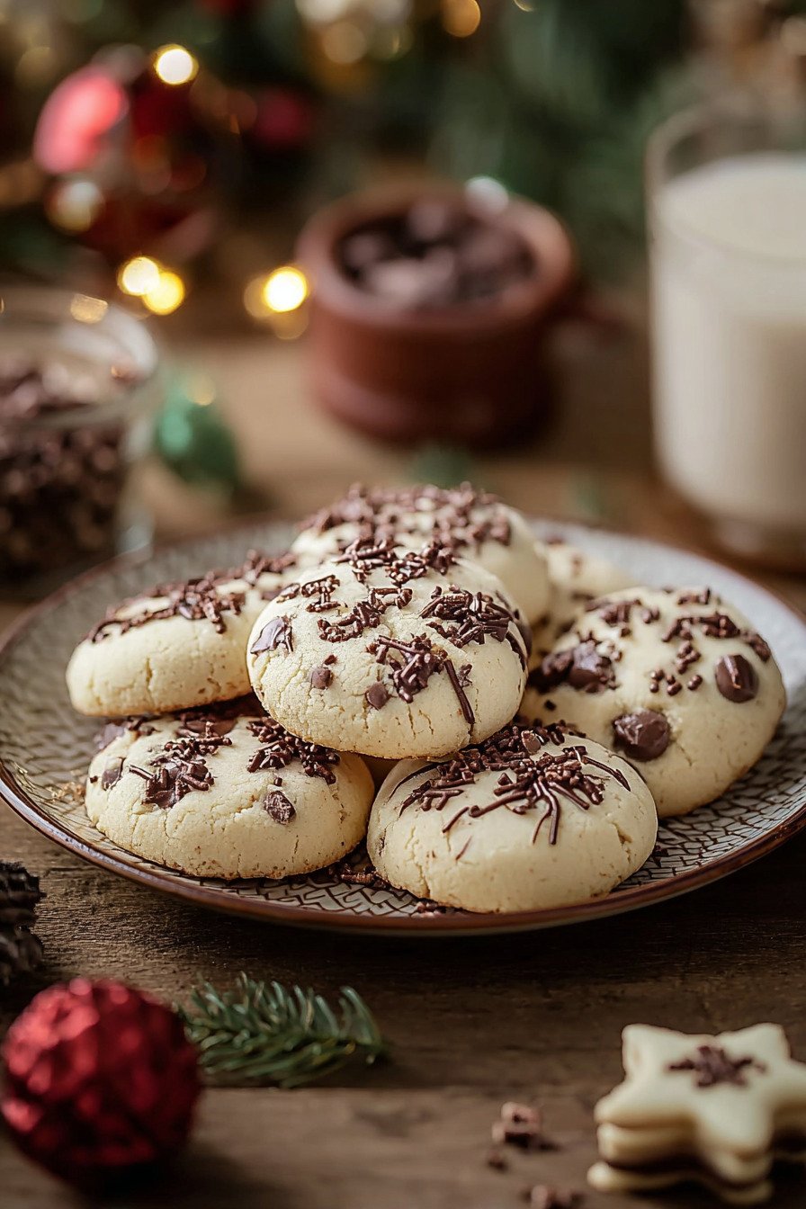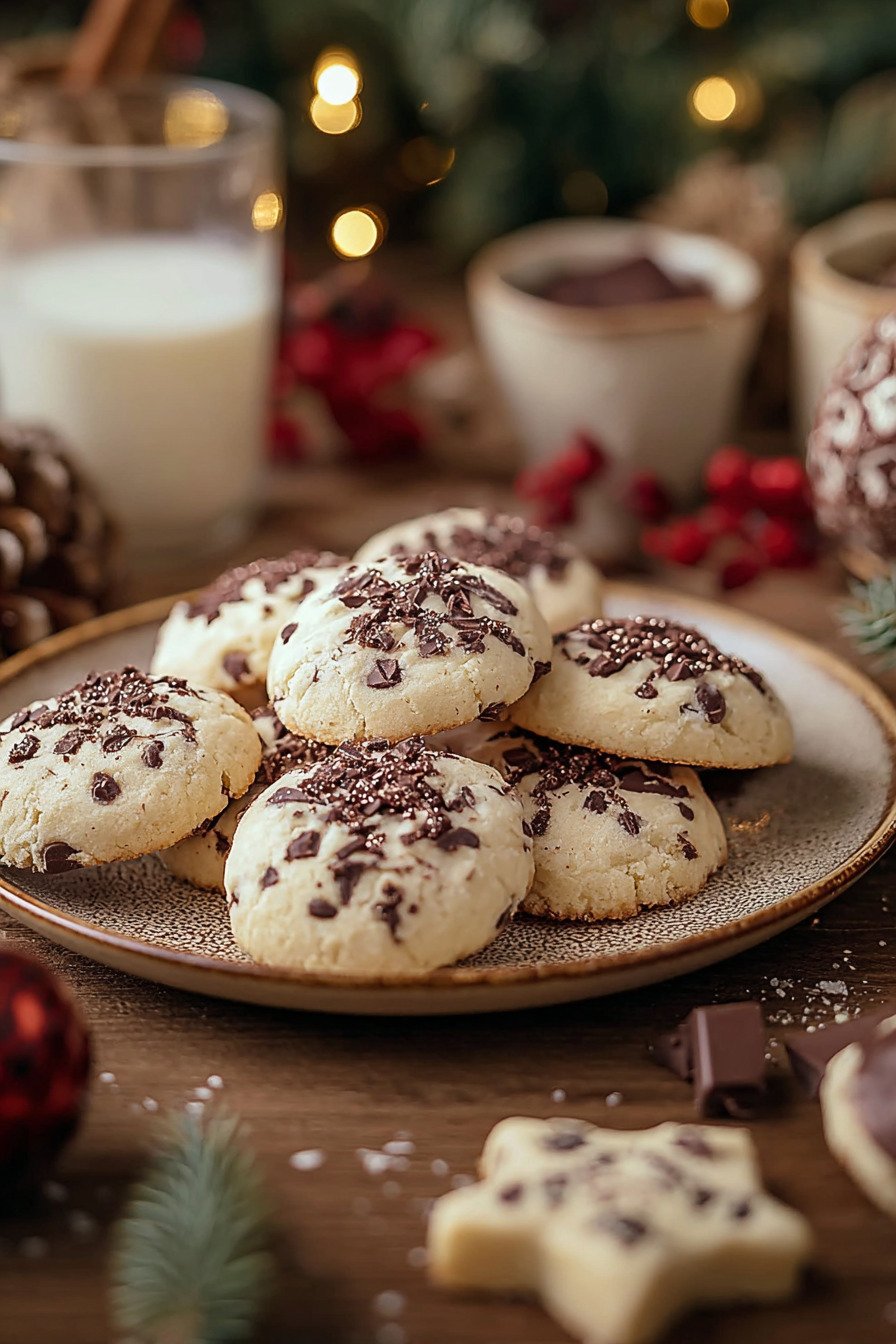 Weiße Schokolade gehackt und optional. Sie schmilzt leicht und setzt milde Punkte. Für Gesunde Weihnachtskekse lässt man sie weg und setzt auf Nüsse in kleiner Menge.