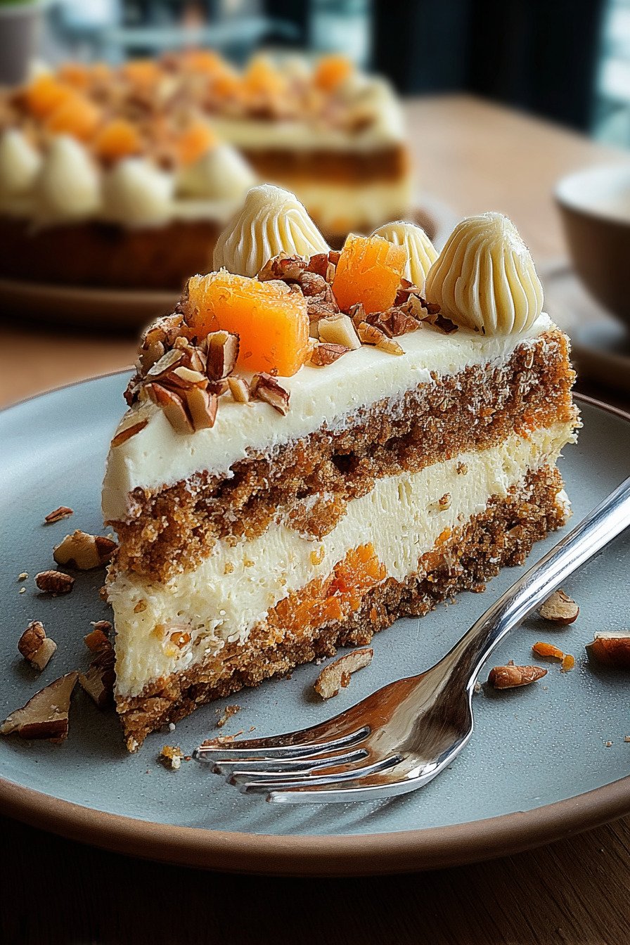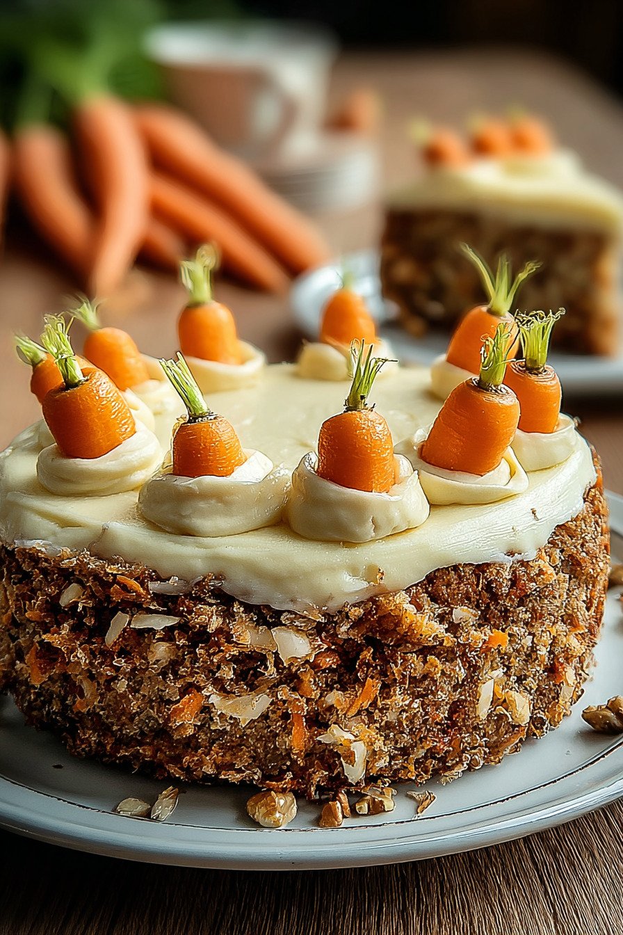 Gehackte Nüsse optional liefern Biss. Für Nussfreiheit passt die Variante Karottenkuchen ohne Nüsse, die Textur bleibt dennoch stimmig.