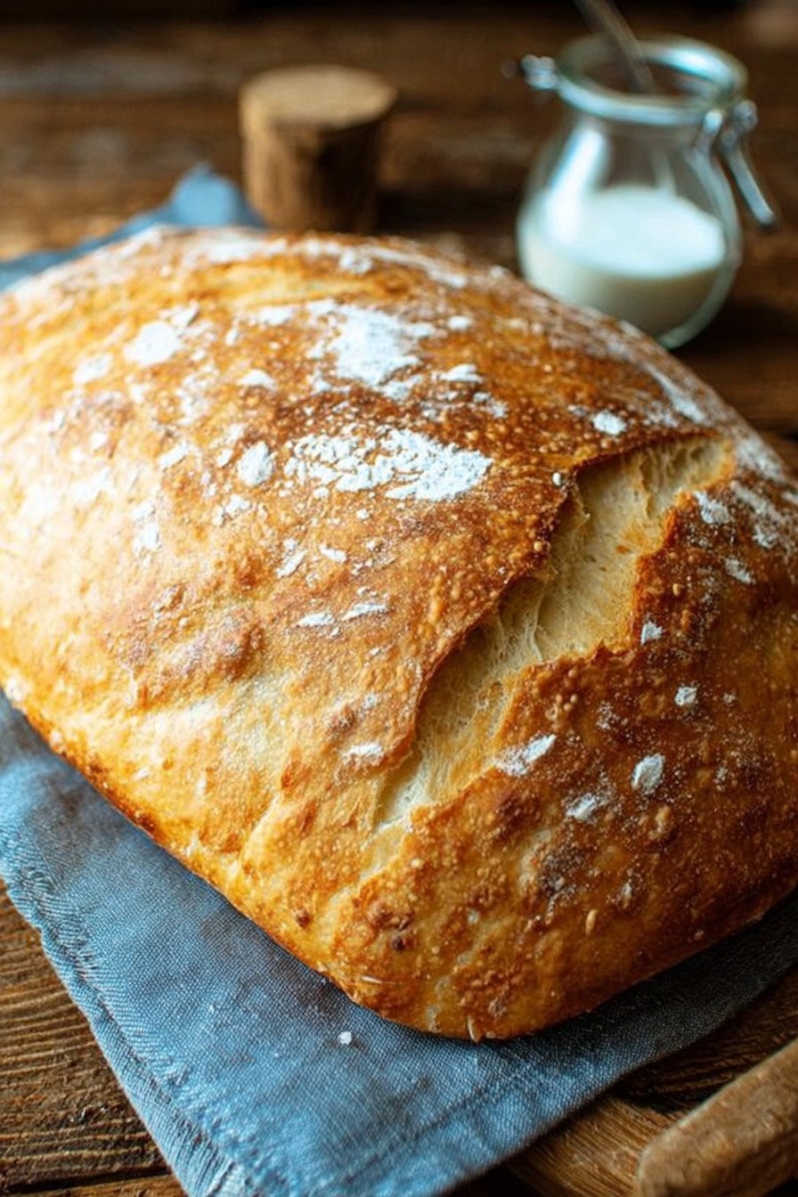 Schritt 5: Backe das Brot etwa 40 Minuten. Die Kruste wird goldbraun, die Unterseite klingt hohl.