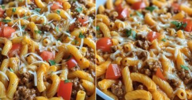 Die Kombination wirkt vertraut und doch besonders. Eine knusprige Käsekruste mit Knoblauch legt sich über das Fleisch. So entsteht einfache Feierabendküche mit Fleisch, die satt macht und zufrieden stellt.