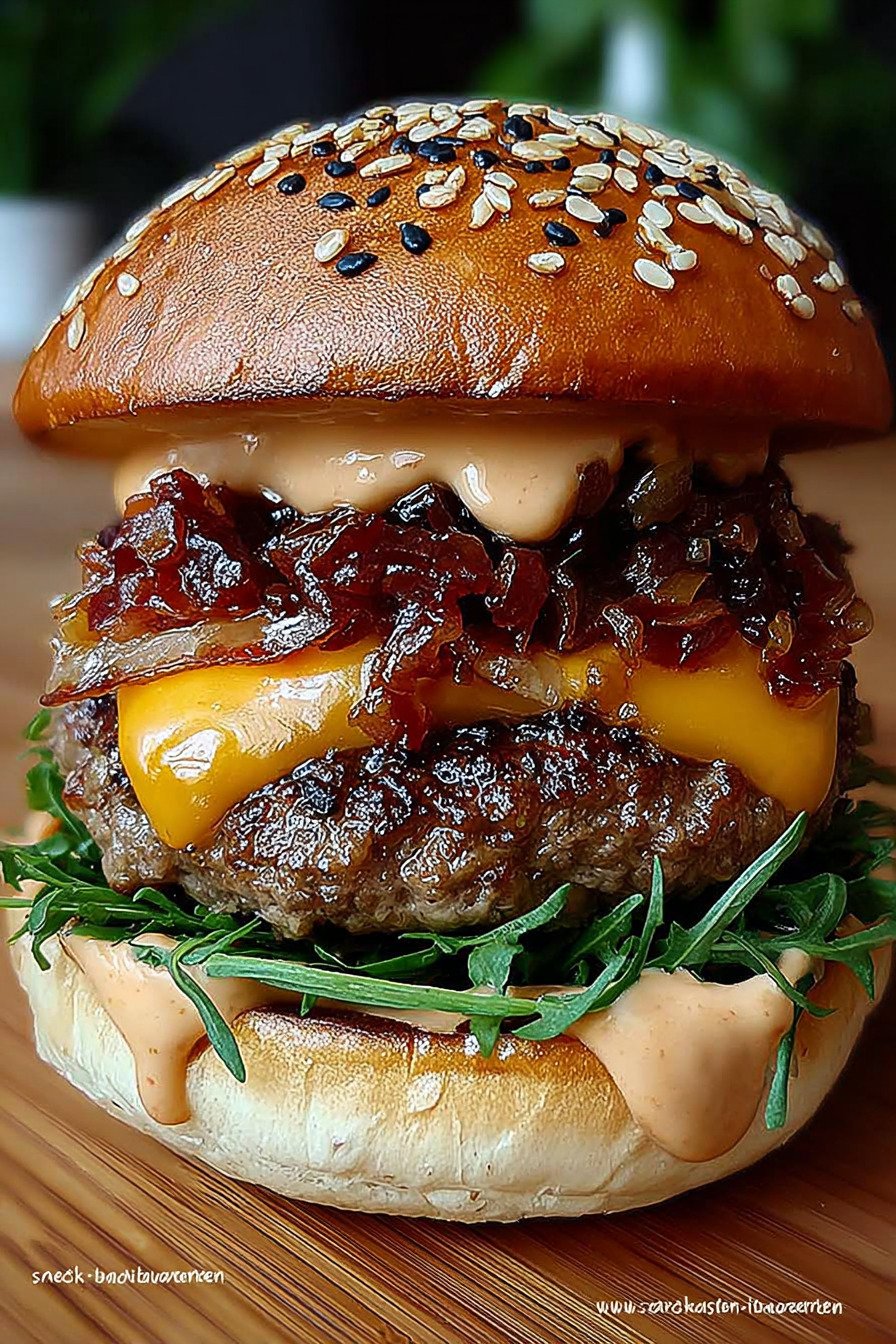 Wer Abwechslung sucht kombiniert mit Burger Beilagen Ideen oder greift zu Mini Burger Brötchen für ein Fingerfood Buffet. In der Grillküche passt dieser Burger zu schnellen Abenden wenn wenig Zeit bleibt und der Appetit groß ist.
