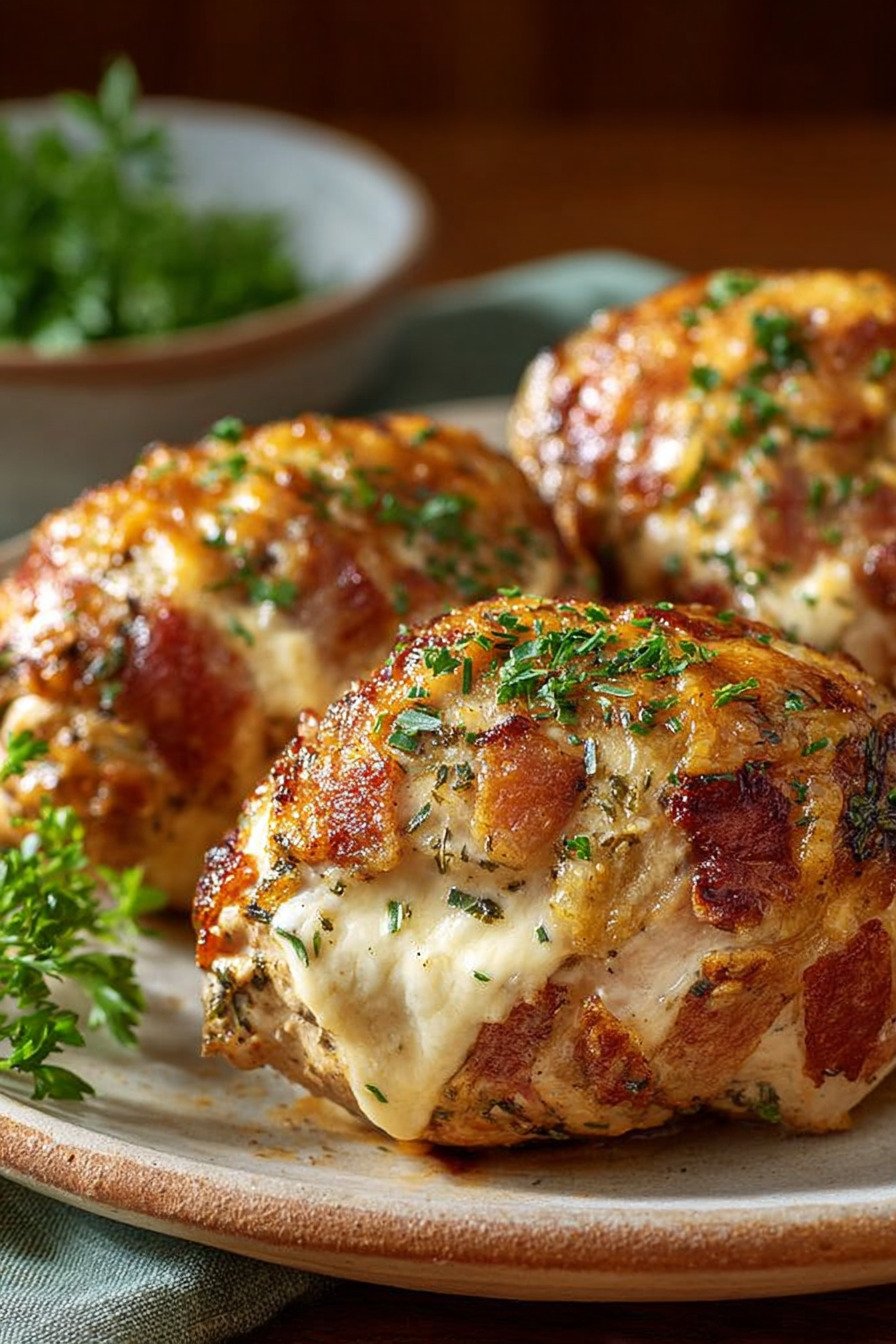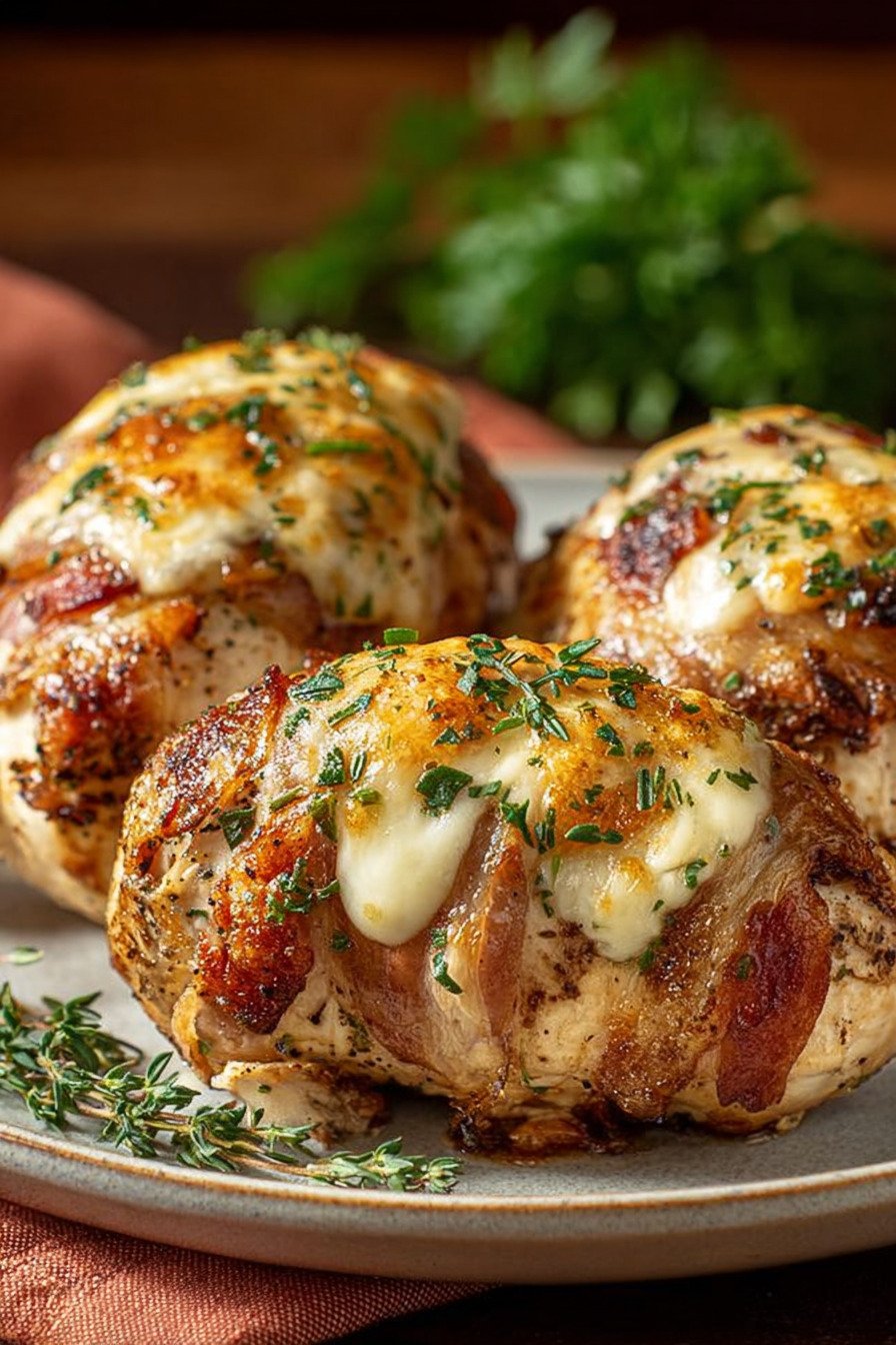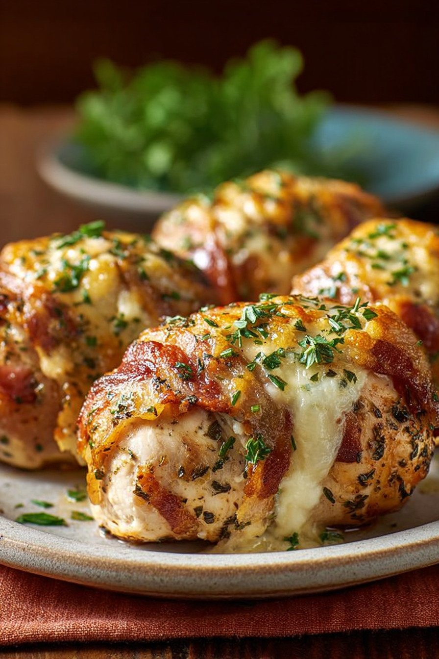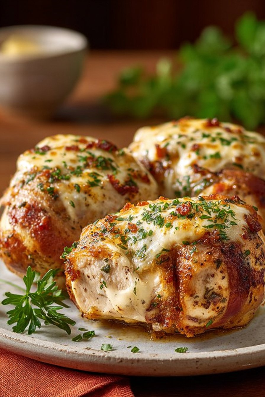 Speck umwickelte gefüllte Hähnchenbrust aus dem Ofen – Saftig & Einfach