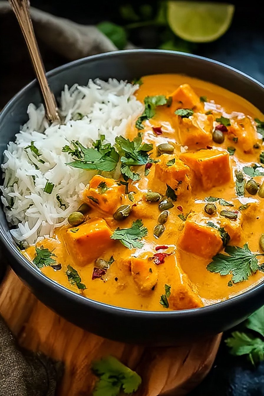• Cremiges Curry mit weicher Süßkartoffel und feiner Kokosnote