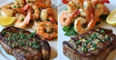 Surf und Turf Steak mit Garnelen Hauptgang Perfektes Dinner