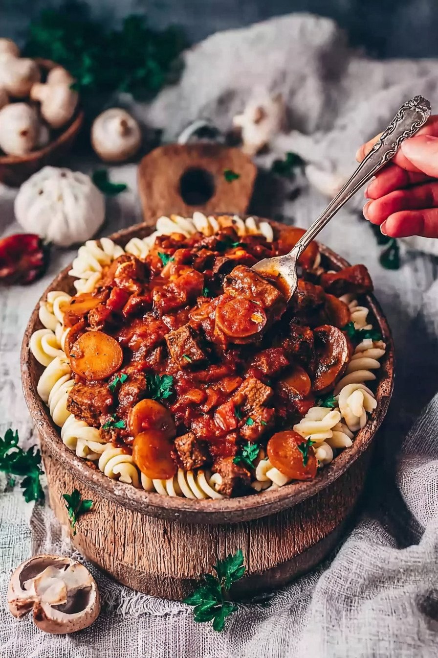Onepot Rezepte bringen Ruhe in die Küche. Dieses vegane Gulasch kocht in einem Topf und schmeckt kräftig. Veganes Gulasch passt zu knusprigem Brot oder zu Kartoffeln. Veganer Gulasch gelingt mit Paprika Zwiebeln Pilzen und Soja Stücken. Die Sauce wird durch Tomatenmark und Paprikapulver dicht. So entsteht Vegetarisches Gulasch das wärmt und satt macht. One Pot Rezepte Vegetarisch sparen Abwasch. Vegane rezepte wie dieses stehen für klare Schritte und wenig Aufwand. Rezepte vegane helfen beim Alltag und lassen Raum für Familie und Freunde.
