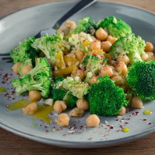 Brokkoli-Röschen kurz in kochendem Wasser blanchieren (ca. 2 Minuten), dann sofort in Eiswasser abschrecken.