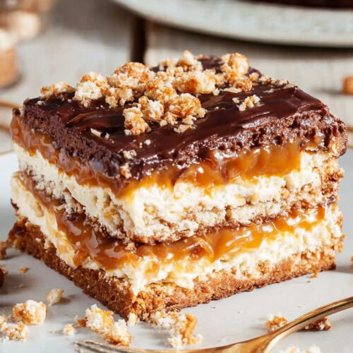Weitere Schichten aus Keksen und Creme abwechselnd einschichten, bis alles aufgebraucht ist.