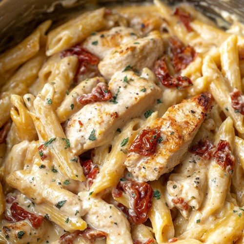 Parmesan unterrühren, bis die Sauce cremig und das Hähnchen zart ist.