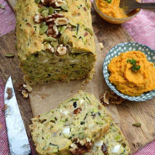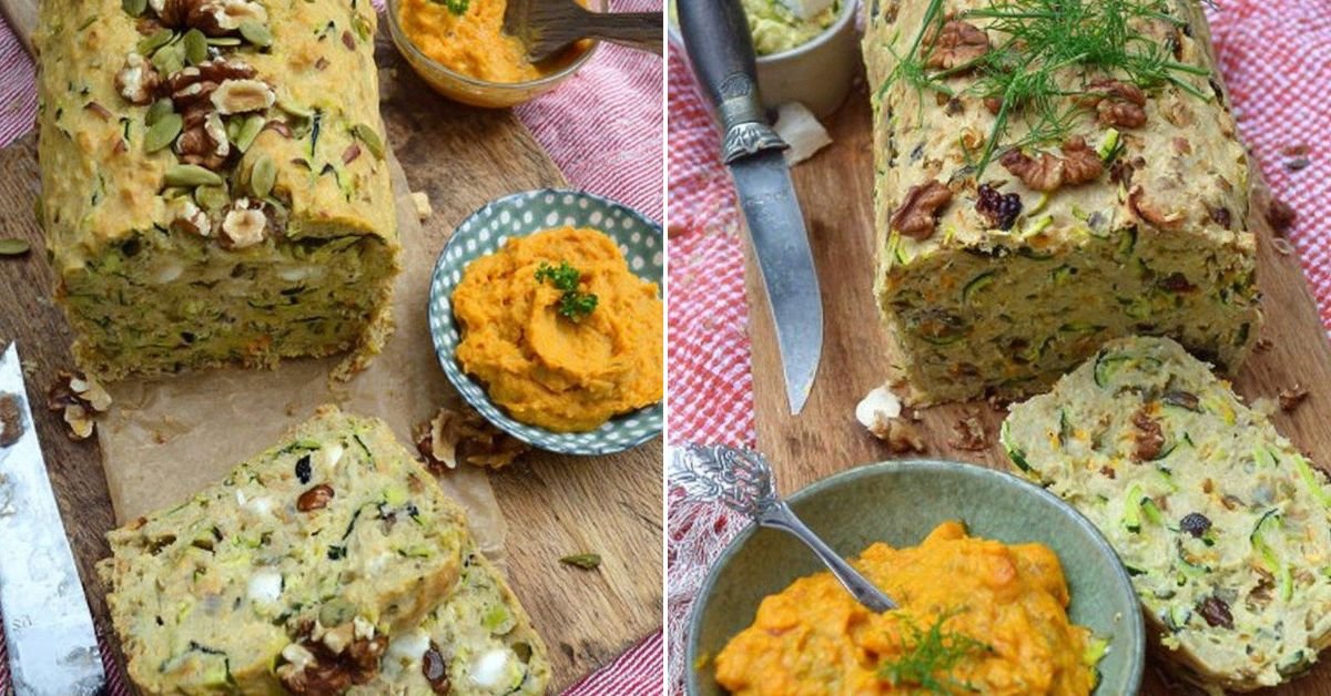- Zucchinibrot Rezept mit Karotten-Ziegenkäse-Dip vereint Gemüse, Nüsse und cremigen Dip.